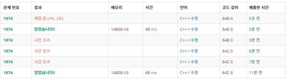 또 각 항목이 전체가 push 되어 있을 때부터 시작하는 것이라 생각해 또 헤맸다.