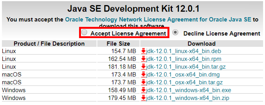3. Accept License Agreement를 클릭한 뒤, 자신에게 맞는 운영체제에 따라 다운받는다.