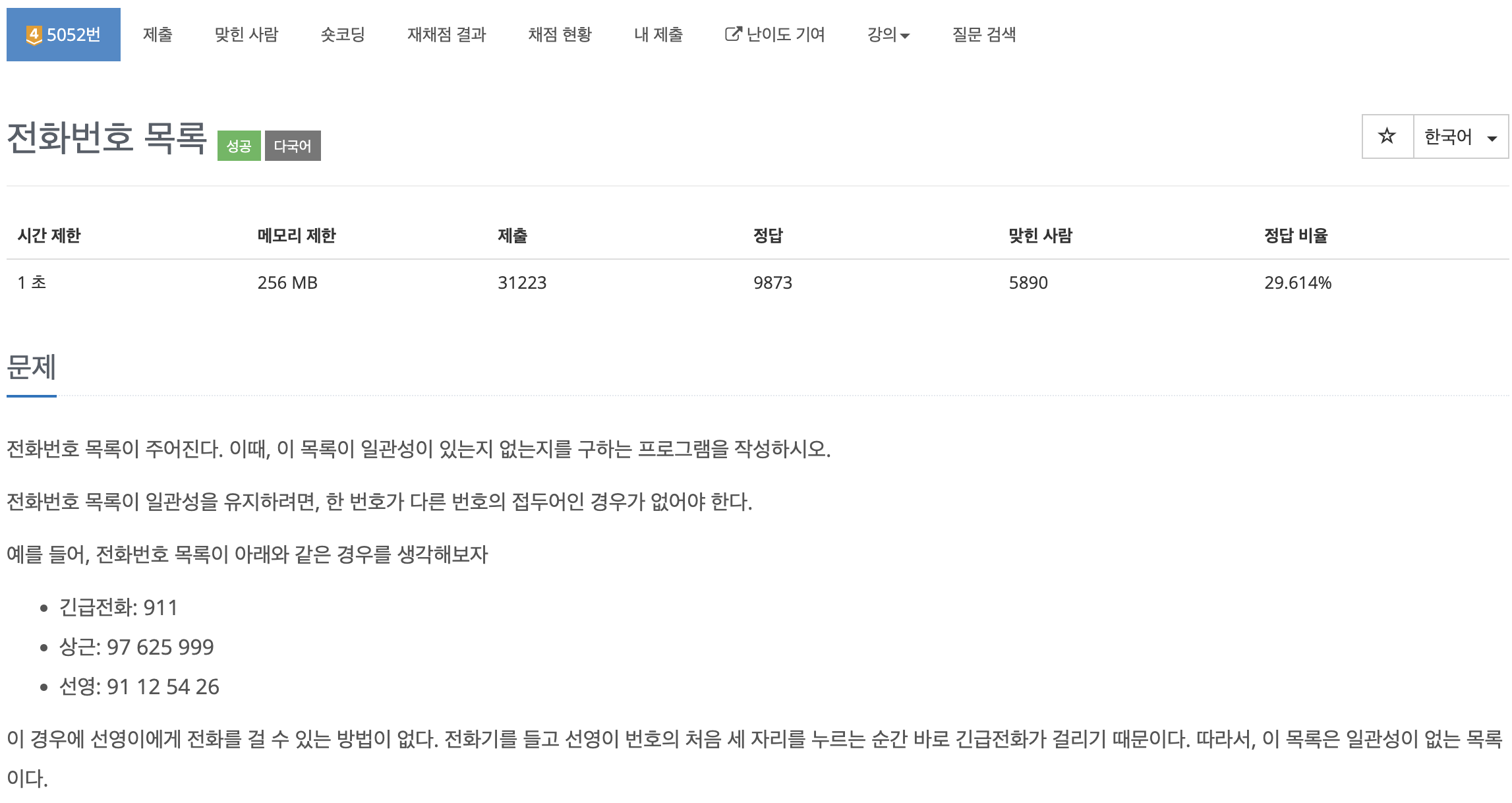 5052번: 전화번호 목록